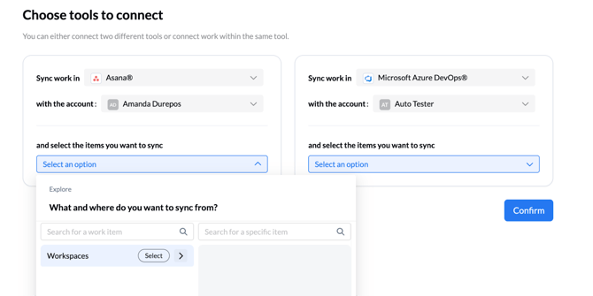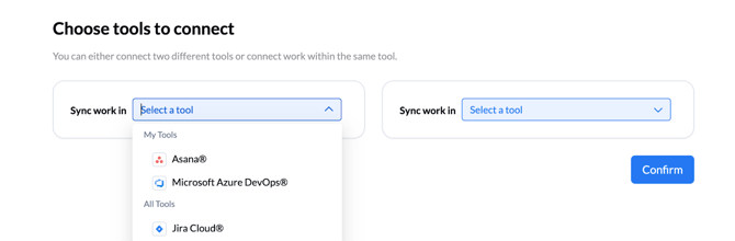 - Choose the type of work item you want to sync in that tool