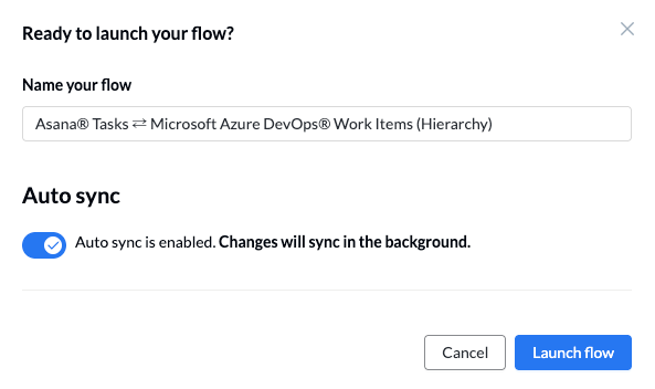 Once you've finished setting up your flow, it's time to launch! When you click Launch you'll see a pop-up similar to this: