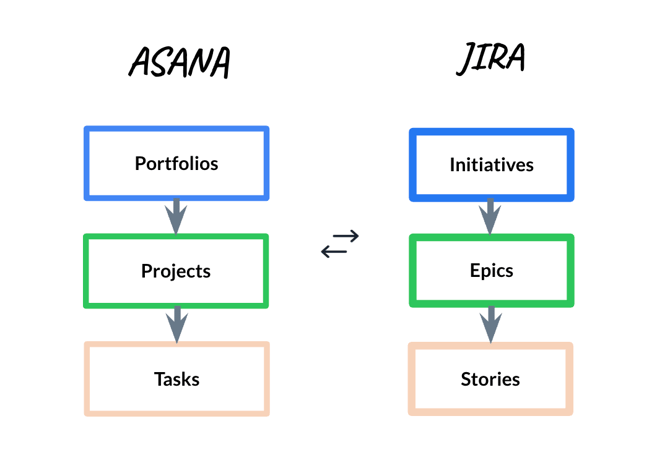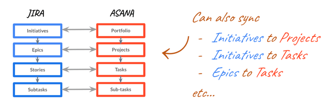 For example, you can map high-level Jira Initiatives and Epics directly to Asana Portfolios and Projects to bridge the gap between strategic planning and technical delivery. This ensures that granular engineering work—like Jira Stories and Subtasks—stays perfectly connected to the right parent project or portfolio when it syncs into Asana.