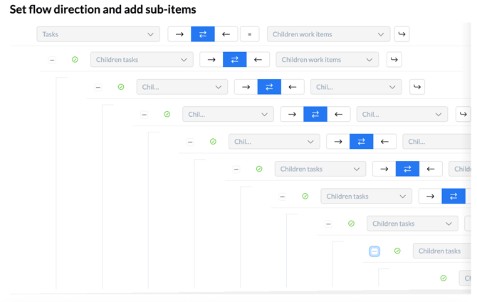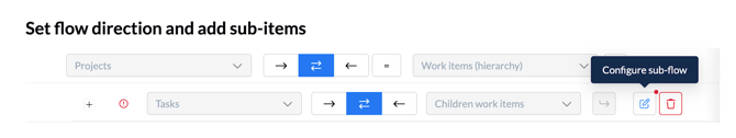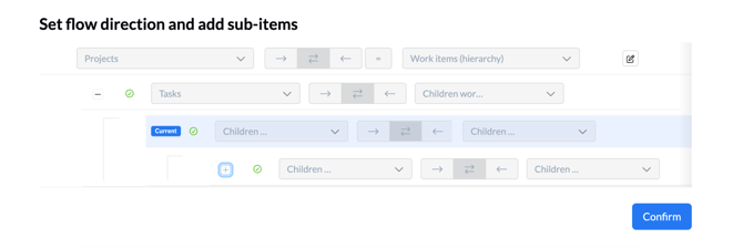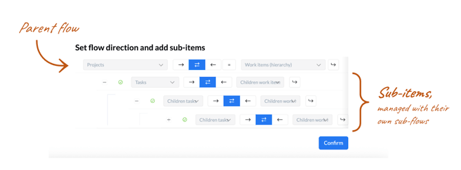 Every level of your hierarchy is managed by its own sub-flow. Unito guides you through the configuration of the main parent flow first, and then helps you define each subsequent sub-flow for sub-items.