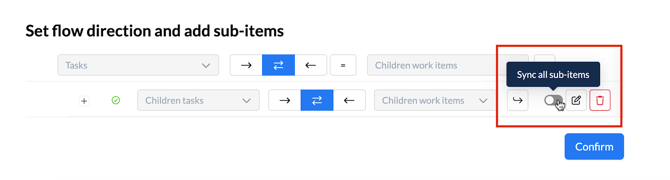 - Finish configuring your parent flow: Once you have added any other desired sub-items, click Confirm. This will return you to the main flow setup where you can finish setting rules and field mappings for your parent-level items.