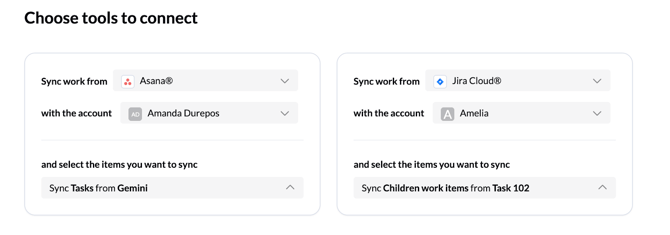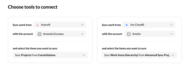 - Select your tools: Choose the tools and specific work items you want to connect.